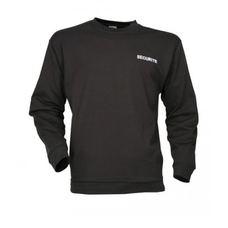 Sweat noir SECURITE lusterrim, molleton 80% coton 20% polyester, col rond bande de propreté, bord côtes élasthane, double piqure au col/manches/bas du sweat, marquage SECURITE dos et devant.